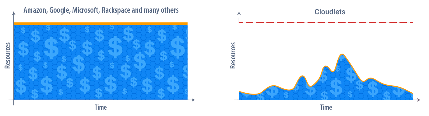 Cloudlets dynamic pricing is our standard pricing model, it is priced similarly to AWS if you used 100% of your CPU/RAM resources 100% of the time, if you use less than your available resources ALL the time, you will pay less with Cloudlets.